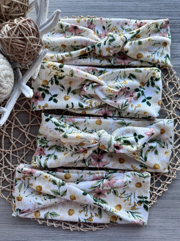 This stylish headband is made from a type of soft, stretchy, and comfortable rib-knit fabric. Luxurious for a snug fit for all-day wear. Measures 19” with just the right stretch to fit both adults and children. Machine washable. The bow headband is 30″ and unties.